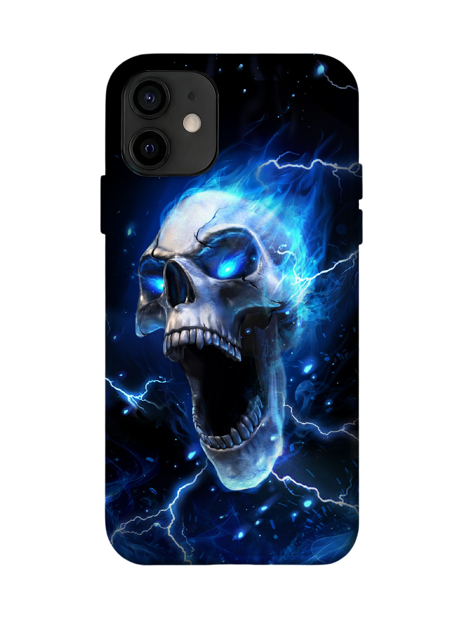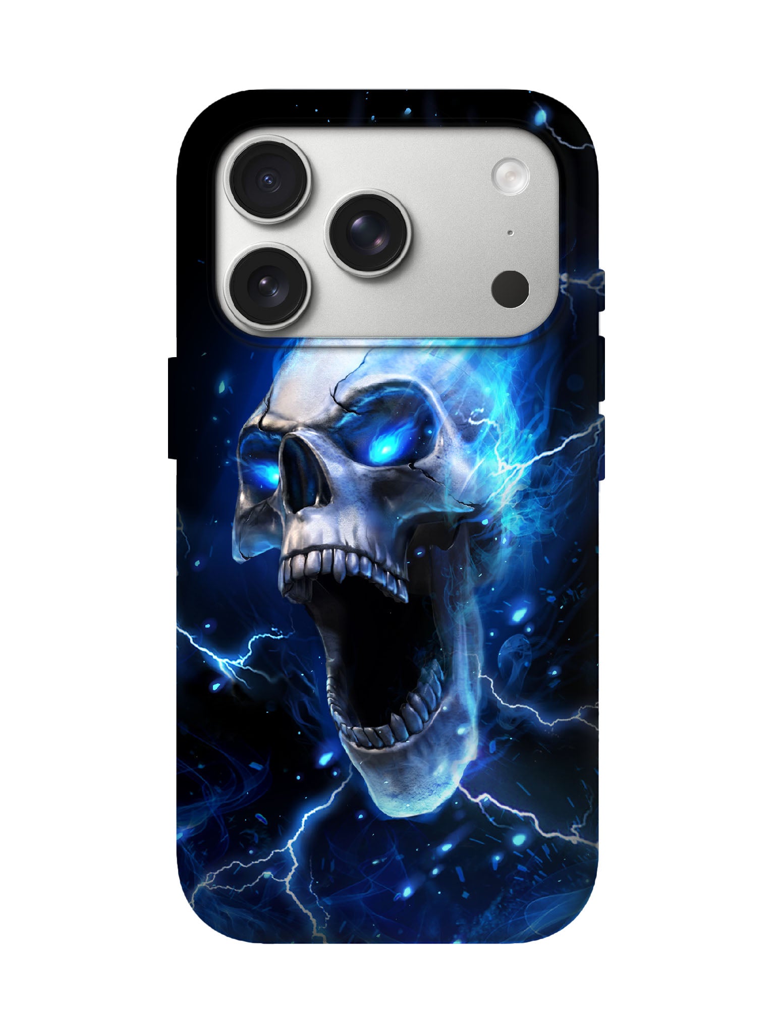 Edgy Cyberpunk Skull Flame Lightning Design Tough Phone Case
