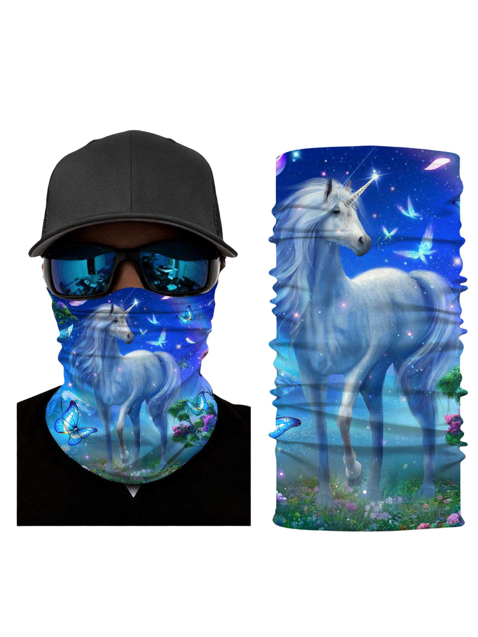 Unisex Neck Gaiter with 3D All Over Print Featuring Galaxy Nebula Unicorn and Blue Butterflies, Aesthetic Style, Breathable Fabric, UV Protection