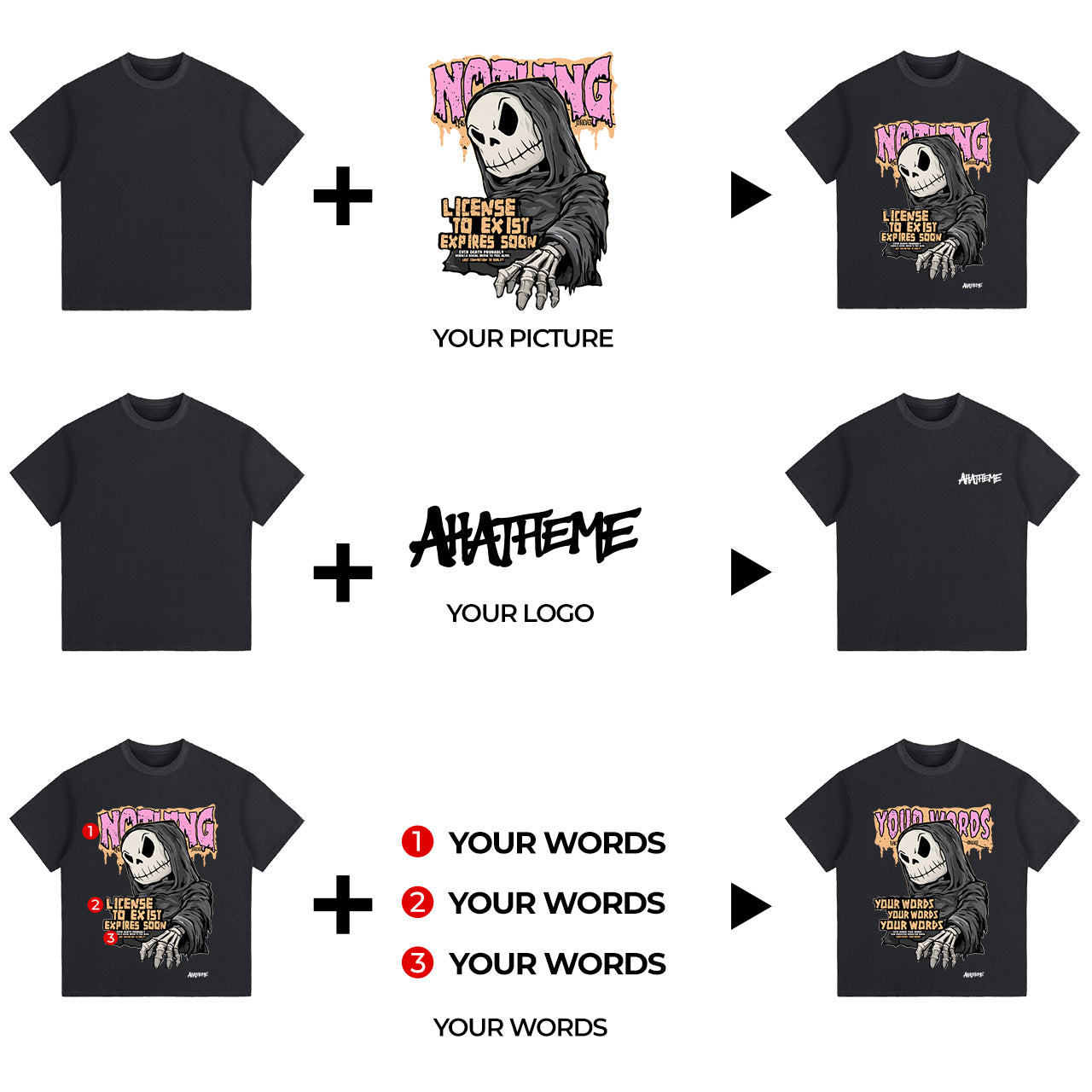 Bring the vibe. Upload a graphic you’re obsessed with, slap on your own logo, or type in custom text (the more personal, the better) — we’ll print it crisp and bold, no boring generic stuff here.