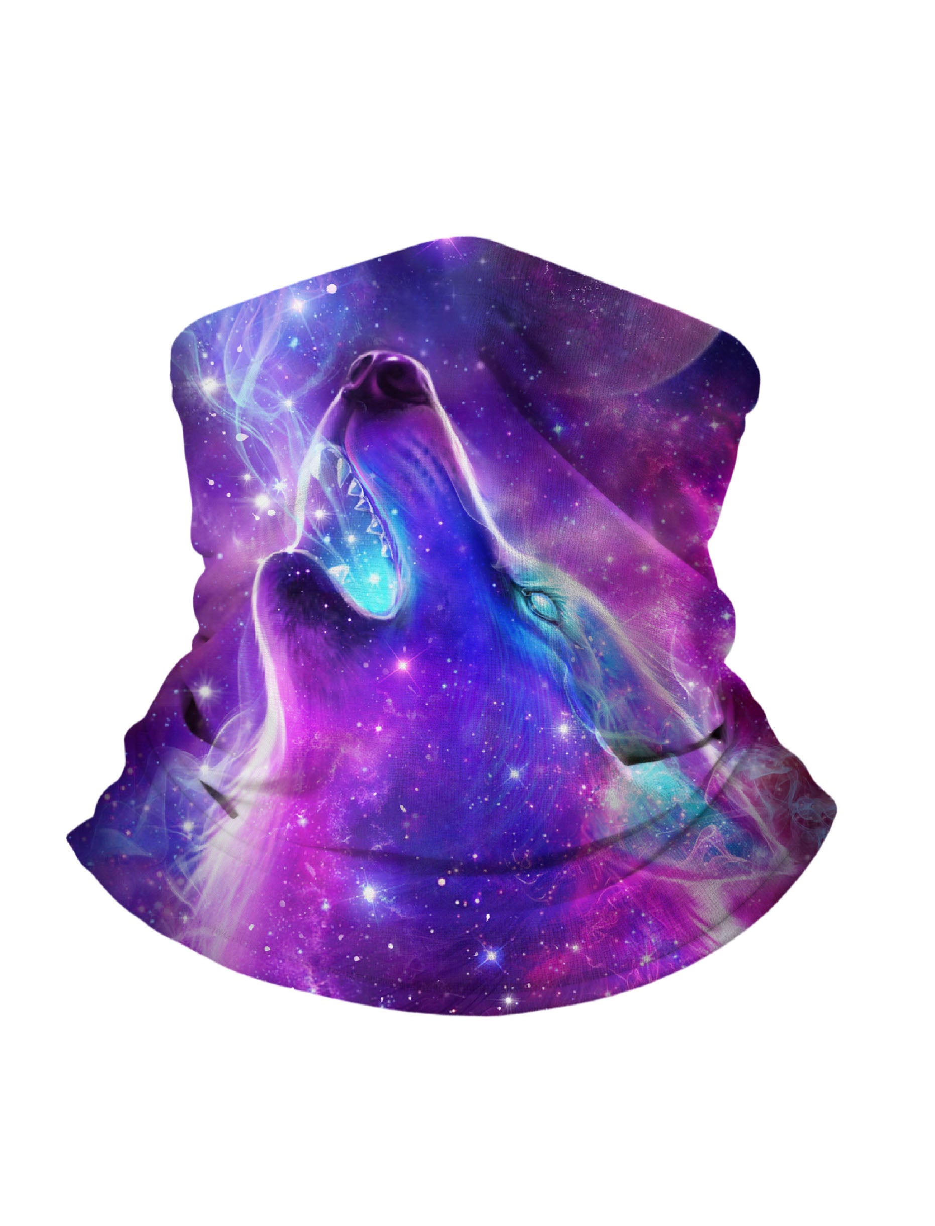 Neck Gaiter with 3D all over print galaxy nebula howling wolf design, Aesthetic style, unisex, soft stretchy, UV protection